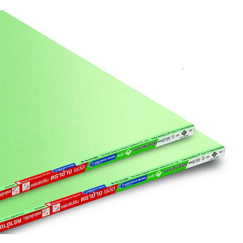 แผ่นยิปซัมทนชื้น มอยส์บล็อค ตราช้างพลัส (MoistBloc Plus) เพิ่มคุณสมบัติการทนความชื้น เพื่อให้เหมาะสำหรับการใช้งานกับพื้นที่ที่มีชื้นสูง